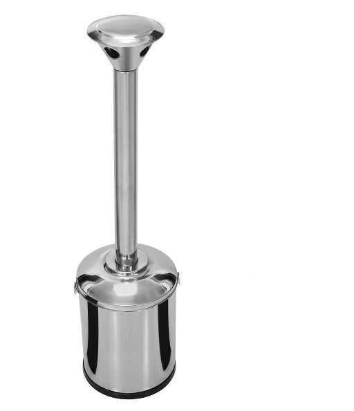 Coletor para bitucas de cigarros confeccionada em aço inoxidável AISI 430, alumínio e com fundo em plástico ABS de alta resistência.